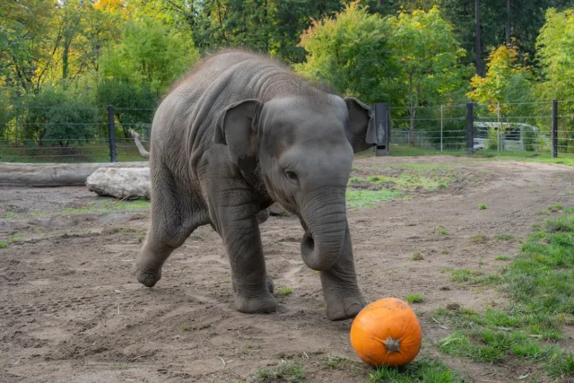 Портленд, штат Орегон – В Оклендском зоопарке прошел ежегодный осенний фестиваль «Разбивание тыкв», в рамках которого гигантские слоны с удовольствием уничтожают полутонные тыквы, но в этом году внимание зрителей привлек слоненок Тула-Ту. В возрасте всего восьми месяцев и весом 351,5 килограмма, Тула-Ту не может соперничать с большими родственниками, которые весят более 4500 килограммов. Тем не менее, сотрудники зоопарка предложили ей небольшую тыкву, с которой она с восторгом играла, словно футбольным мячом, демонстрируя ловкость и игривость, как запечатлено на видео, опубликованном зоопарком.